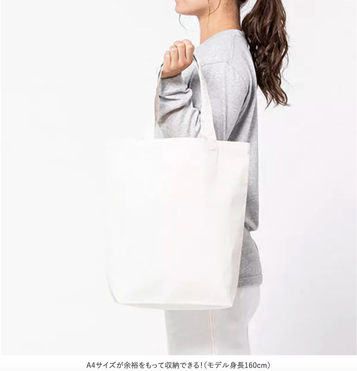 A4サイズが余裕をもって収納できる定番のキャンバストートバッグです。